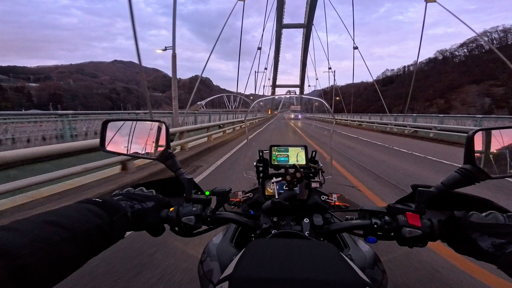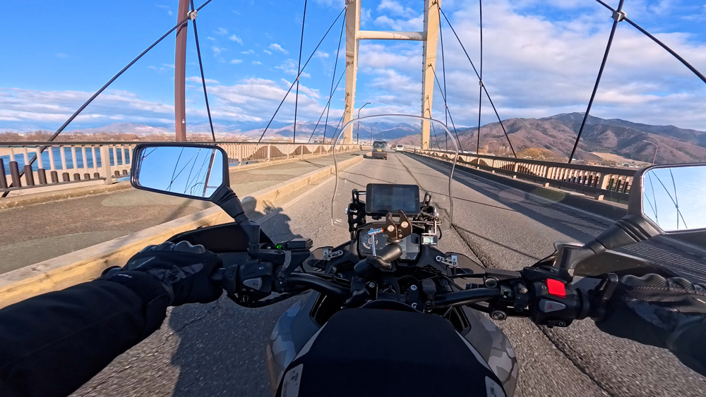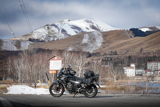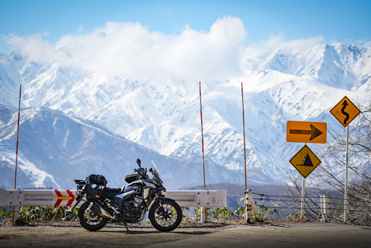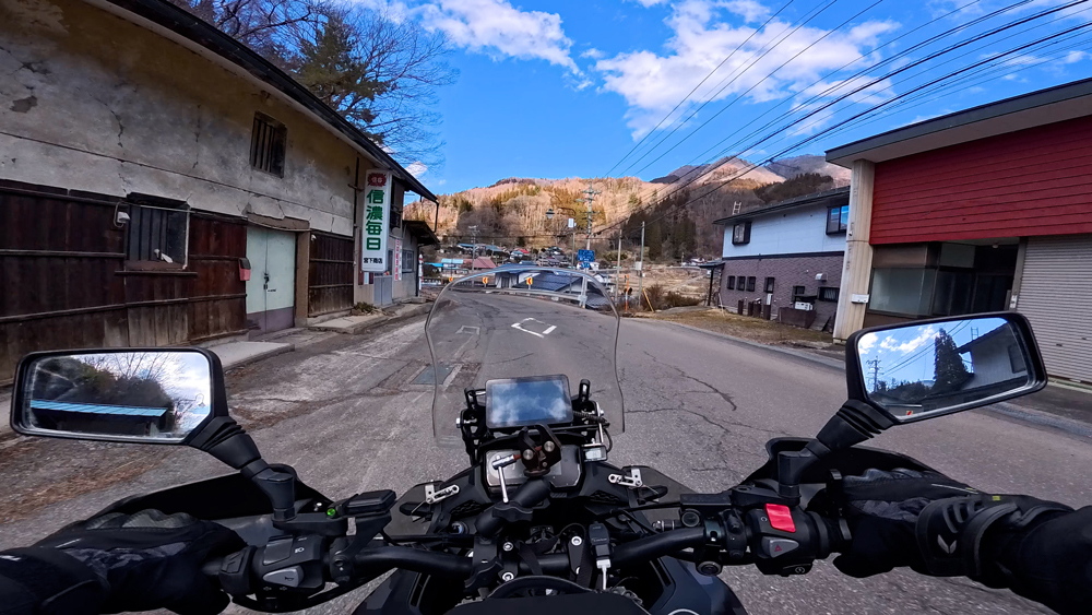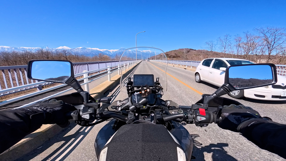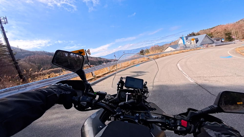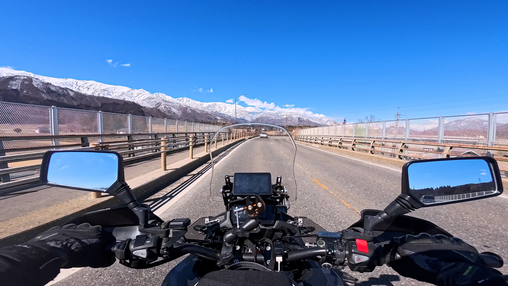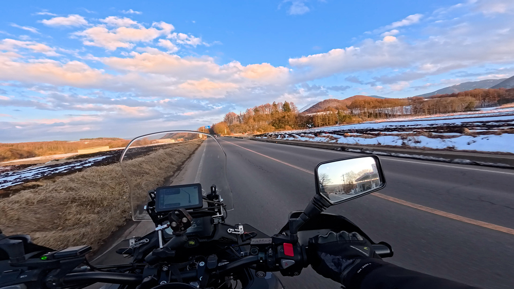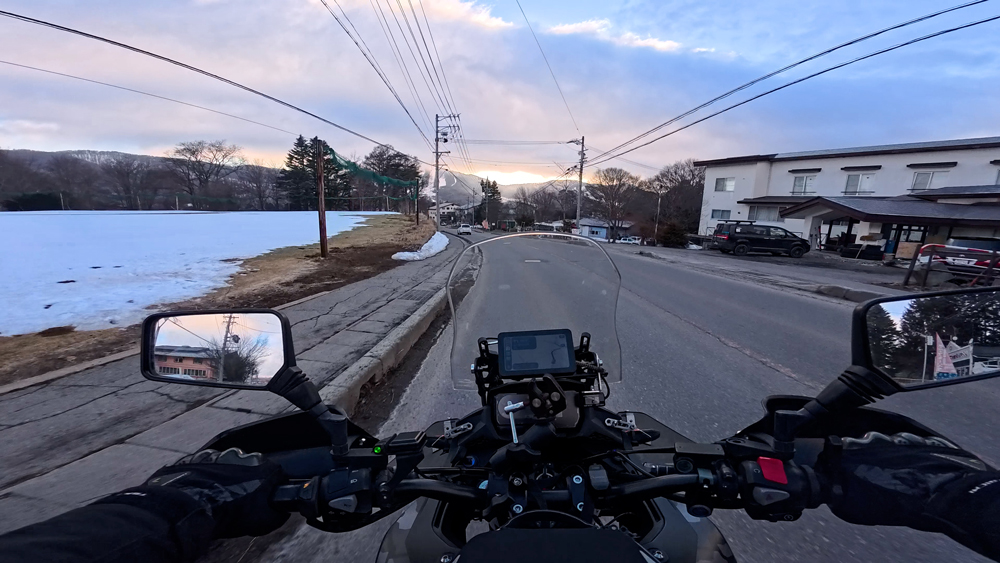 路肩の積雪や凍結箇所もあり、早春ツーリングらしいコンディションです。