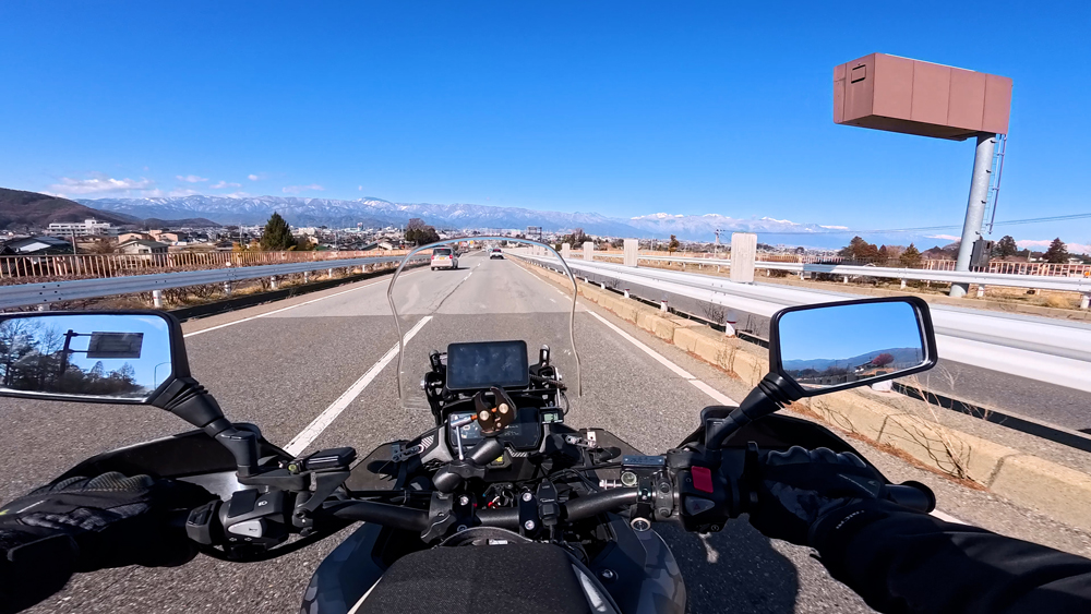 アルプス展望しののめの道を走行中、北アルプスと並走する展望道路です