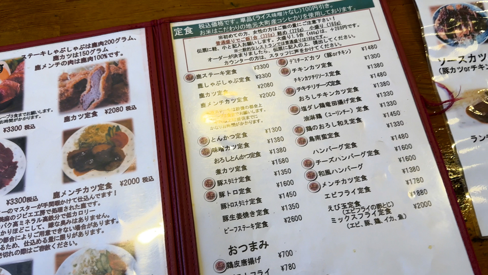 | 昼食 | カイザー(鹿カツ定食) | 2,080円 |