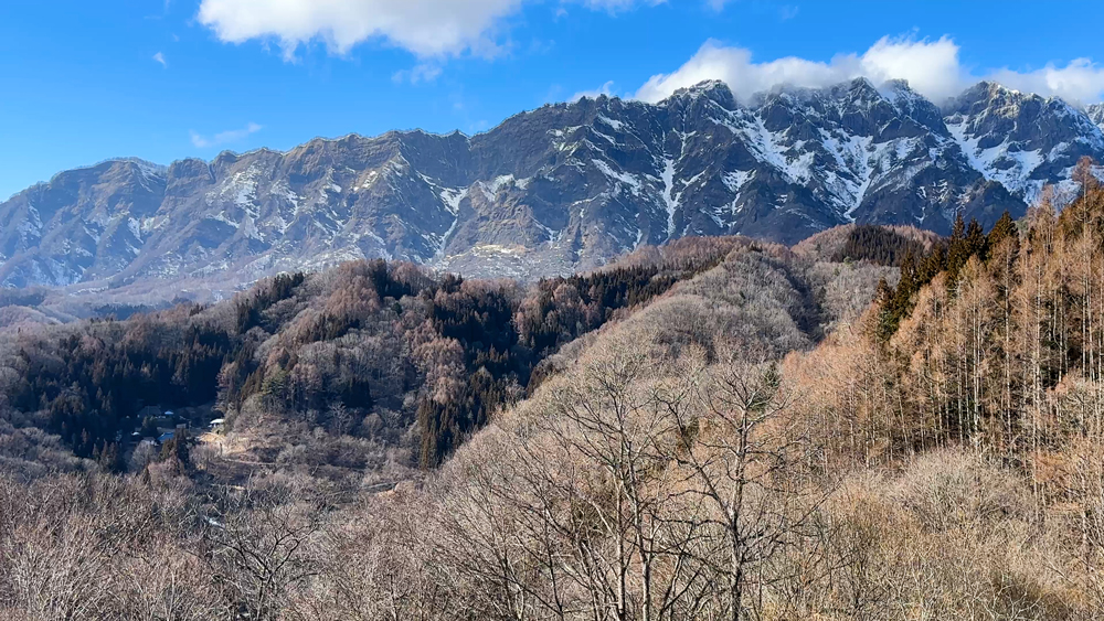 標高を上げるごとに景色が変わり、 雪の残る高原と北アルプスのスケールを体感。